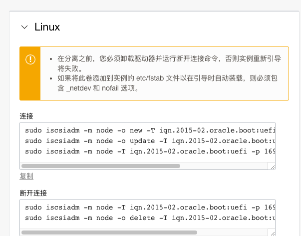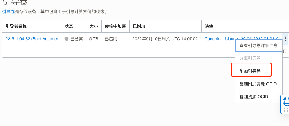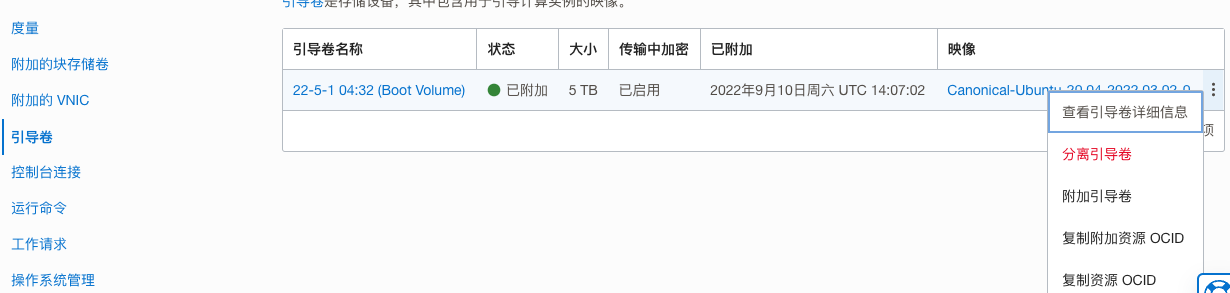 甲骨文后台=>计算>>实例>>实例详细信息>>引导卷>>分离