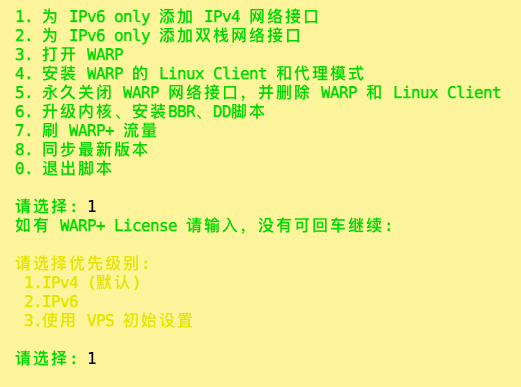 DiG9的用户名非常烦,没办法通过添加nameserver的方式使用ipv4,因此我们使用warp来添加一个ipv4.