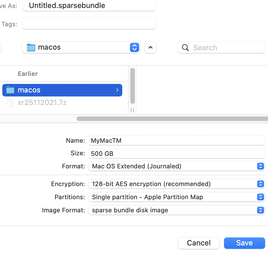 其中sparse bundle disk image作为Image Format,磁盘文件就是一块一块部修改也就不会整个都要重新备份(简单点说就是稀疏文件)