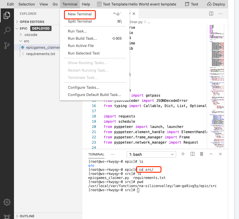 我们云函数主要的就是epicgames_claimer和requirements.txt这两个文件。我们把这两个文件移动到一个新的文件夹 上传这个文件夹到这个云函数中