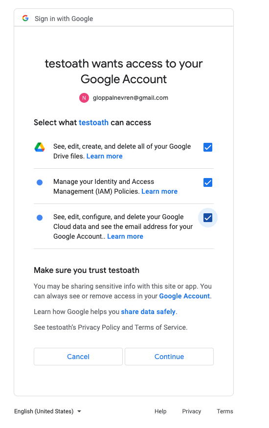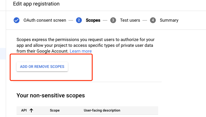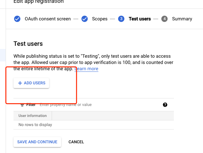 最后一步的选择测试用户,就要填自己的gmail邮箱了
