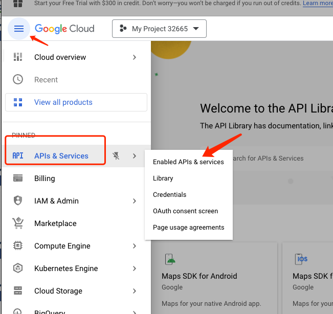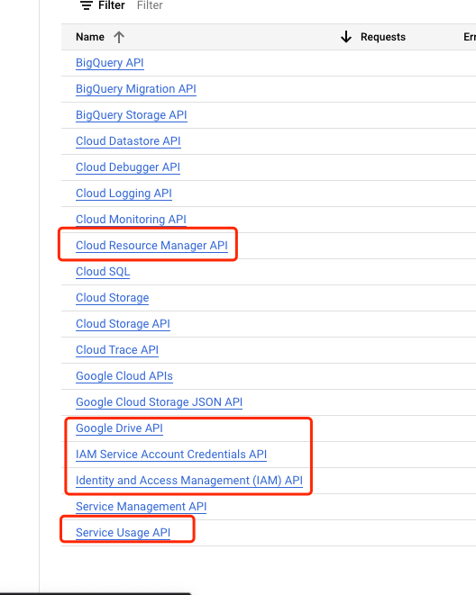 默认的话 Service Usage API 是开启的,去开启另外四个就ok。