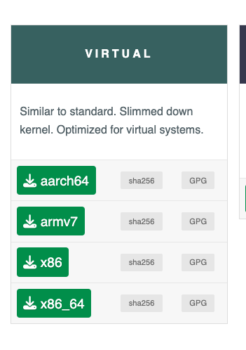 下载alpine的时候,选择现在针对虚拟机优化的镜像